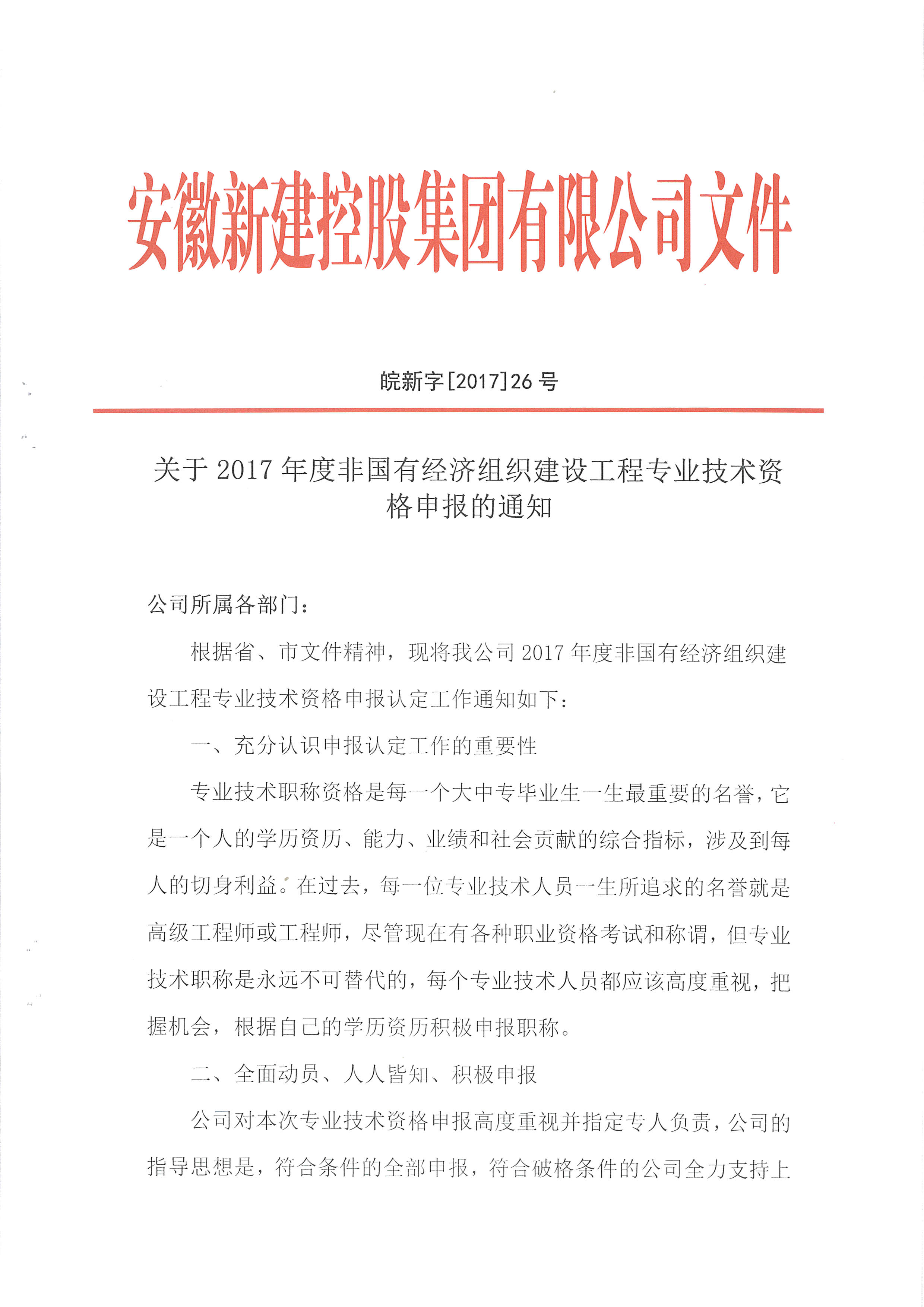 關(guān)于2017年度非國有經(jīng)濟組織建設(shè)工程專業(yè)技術(shù)資格申報的通知