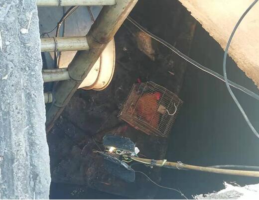 2、施工人員進(jìn)入前檢測暗渠內(nèi)的氧含量。氧含量檢測方法采用放活體動物進(jìn)入暗渠,測試30分鐘后如無異常,再進(jìn)入作業(yè)。如下圖
