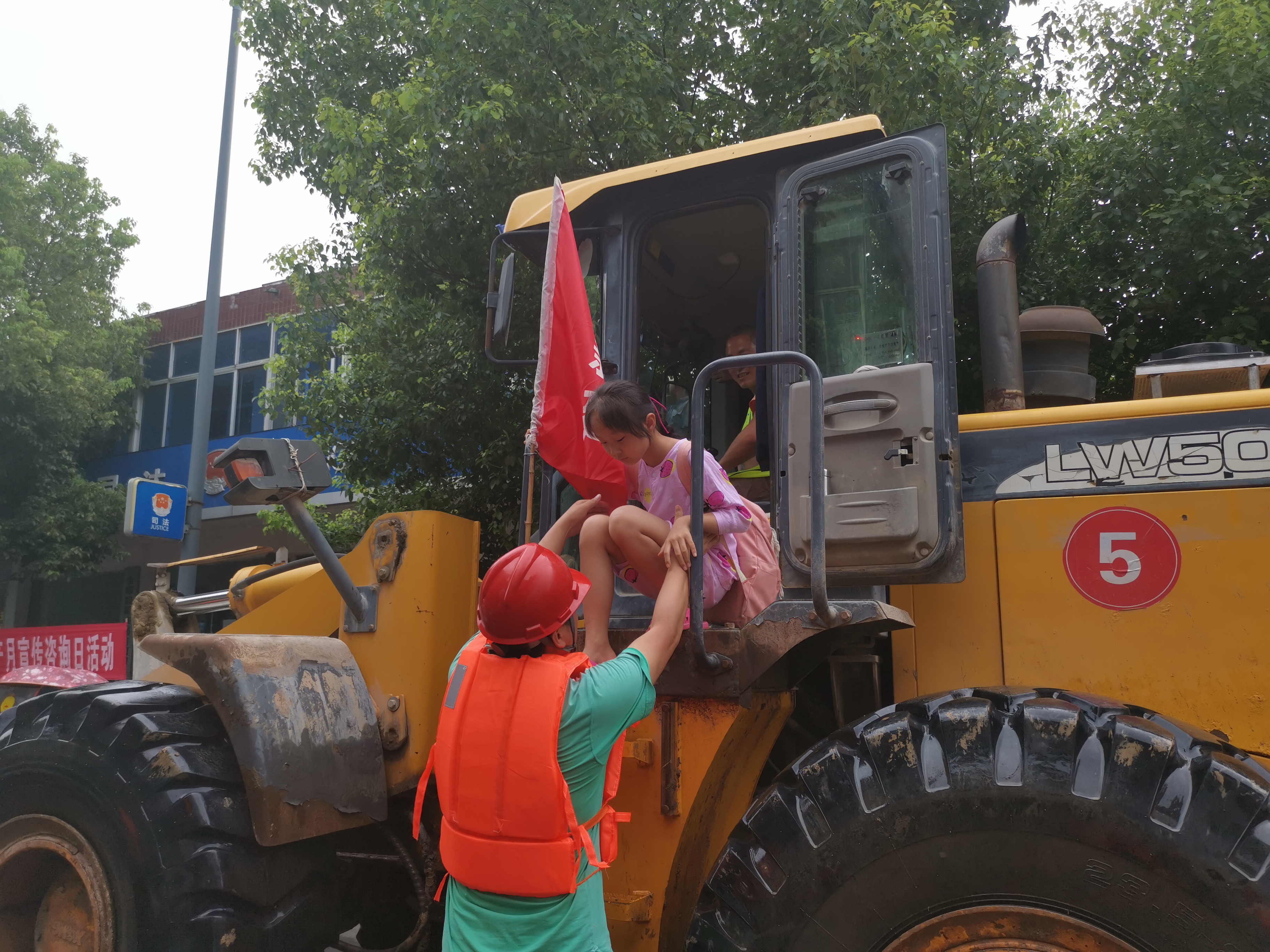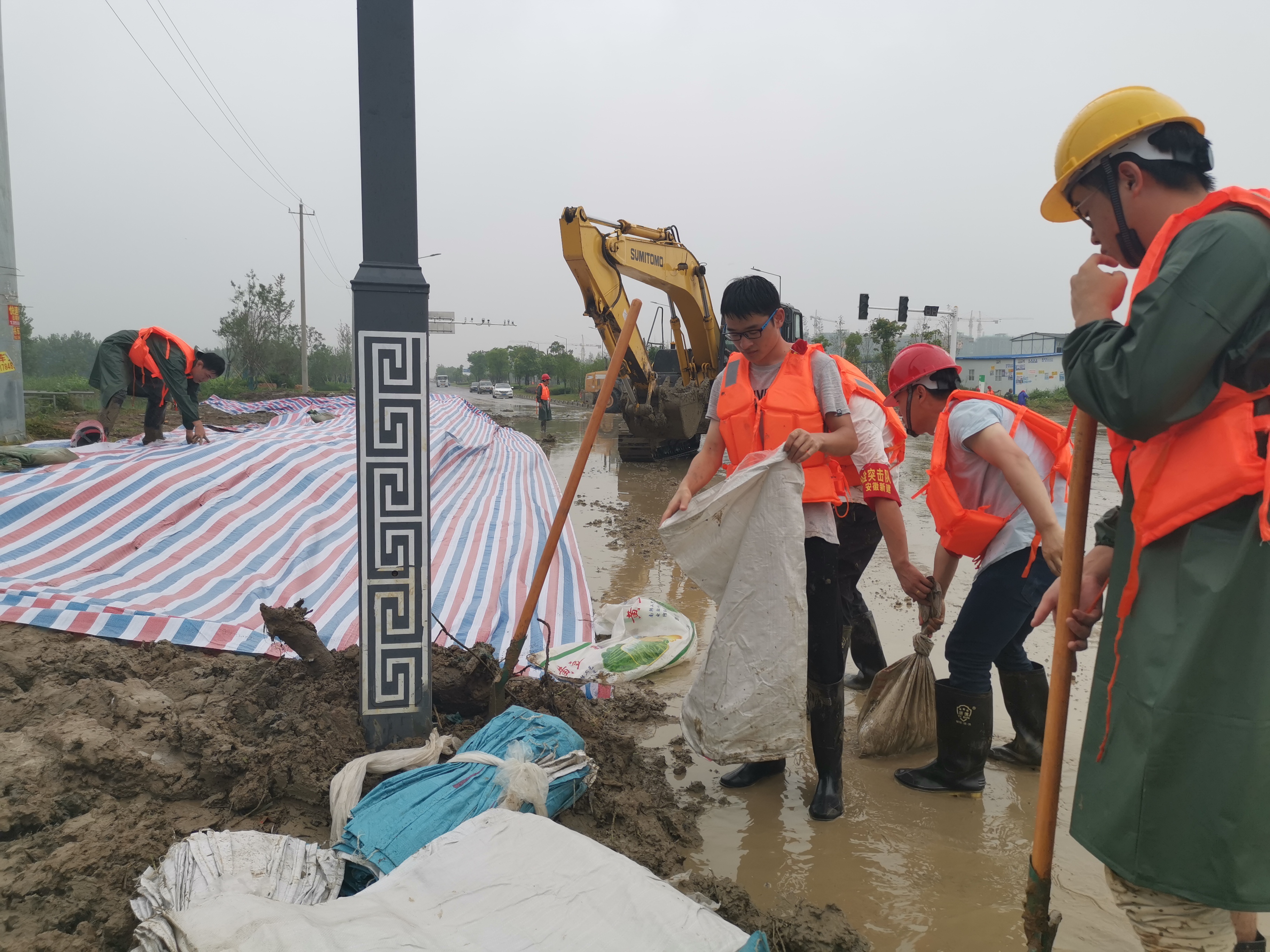 7月21日中午2:10分,突擊隊(duì)再次接到縣防汛指揮部命令,古河鎮(zhèn)滁河大堤漫堤汛情嚴(yán)重,要求突擊隊(duì)立即組織設(shè)備前往支援。突擊隊(duì)馬上安排平板車先行運(yùn)送4臺(tái)裝載機(jī),11名突擊隊(duì)員隨車出發(fā),于中午2:45分到達(dá)目的地,隨即與地方政府取得聯(lián)系,配合消防戰(zhàn)士、解放軍官兵及抗洪干部群眾運(yùn)送沙袋、物資。由于該處汛情較為嚴(yán)重,截止到發(fā)稿之時(shí),該處的抗洪救災(zāi)工作還在繼續(xù)當(dāng)中。