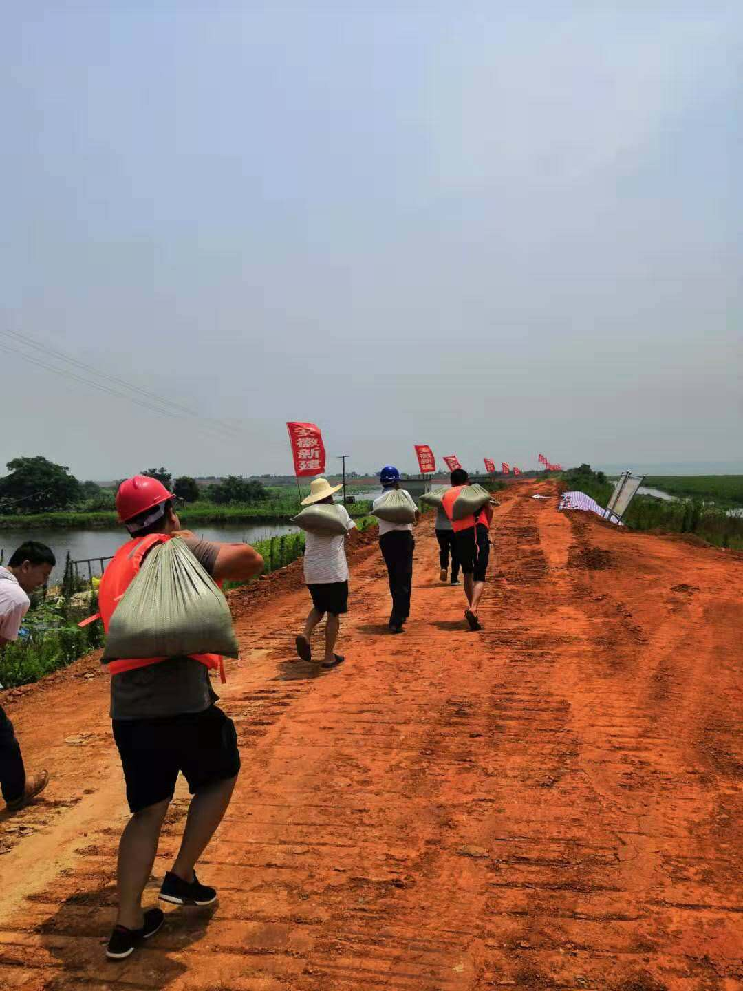 從7月中旬開始,我公司黃蓋湖項目部積極響應(yīng)臨湘市防汛抗旱指揮部號召,組織項目管理人員6人、工人40名、挖機3臺、自卸汽車5輛進駐元潭鄉(xiāng)高橋垸堤,同中共臨湘市醫(yī)療保障局第一臨時黨支部共同抗洪已達十余天。