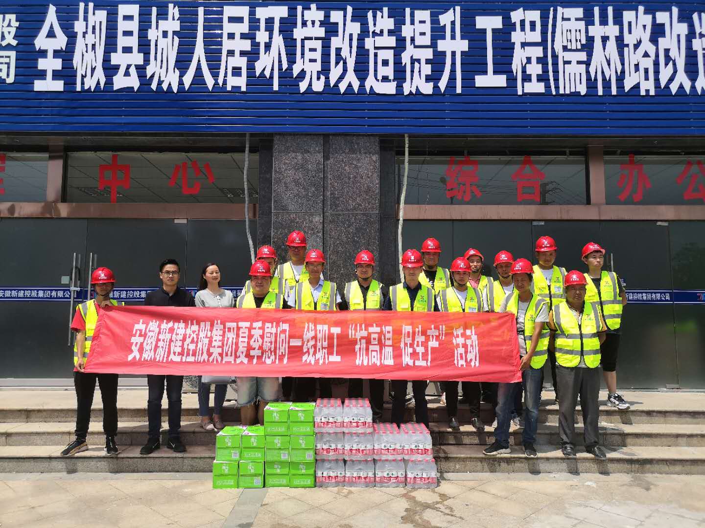 連日高溫,酷暑難耐。8月19日上午,集團(tuán)公司行政、人事、安全等相關(guān)負(fù)責(zé)人貫徹落實(shí)集團(tuán)公司主要領(lǐng)導(dǎo)提出的“三確保”精神,為高溫期間堅(jiān)守在各項(xiàng)目部施工一線的員工,送去礦泉水、綠茶等慰問品,確保一線員工生命健康安全,確保平安度夏,確保生產(chǎn)經(jīng)營順利。