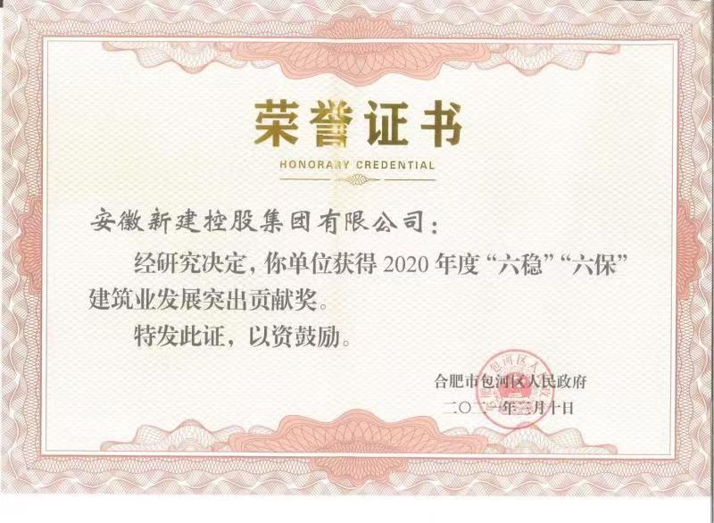 熱烈祝賀安徽新建控股集團有限公司榮獲2020年度“六穩(wěn)”“六保”建筑業(yè)發(fā)展突出貢獻獎!