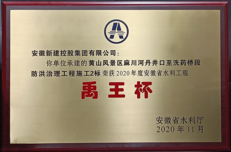 經(jīng)過層層評審,由公司承建的黃山景區(qū)麻川河丹井口至洗藥橋段防洪治理工程施工2標(biāo)榮獲2020年度安徽省水利工程“禹王杯”獎(jiǎng)項(xiàng),并在近日,獲得了榮譽(yù)證書和牌匾。此次獲獎(jiǎng)不僅是上級部門對新建集團(tuán)水利工程建管成績的肯定,也將激勵(lì)公司繼續(xù)秉承“惟德、惟信、惟實(shí)”的價(jià)值觀,創(chuàng)造更多精品工程。