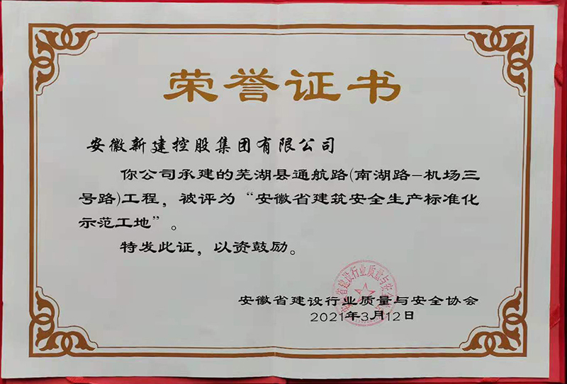 日前,安徽省建設(shè)行業(yè)安全協(xié)會公告2020年度第四批安徽省建筑安全生產(chǎn)標(biāo)準(zhǔn)化工地名單,由集團(tuán)公司承建的蕪湖縣通航(南湖路-機場三號路)工程榮獲”安徽省建筑安全生產(chǎn)標(biāo)準(zhǔn)化示范工地”稱號。