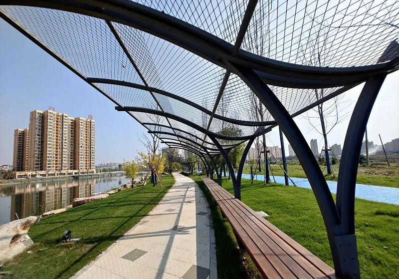 通過親水棧道、觀景亭、水生植物等營造豐富的空間,