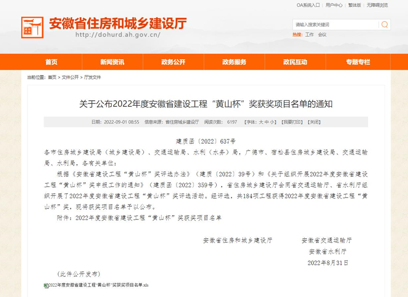 近日,安徽省住房建設(shè)廳公布2022年度安徽省建設(shè)工程“黃山杯”(省優(yōu)質(zhì)工程獎(jiǎng))獲獎(jiǎng)名單,安徽新建承建的全椒縣站前路道路及火車(chē)站廣場(chǎng)改造工程、蕪湖縣通航路(南湖路——機(jī)場(chǎng)三號(hào)路)工程、廬江縣泥河路工程三標(biāo)段3個(gè)建設(shè)工程榮膺該獎(jiǎng)項(xiàng)。