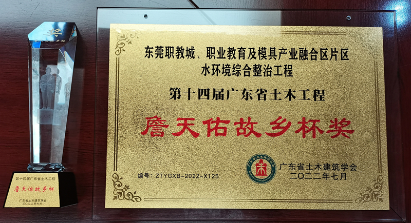 近日,集團(tuán)公司收到廣東省土木建筑學(xué)會(huì)頒發(fā)的榮譽(yù)證書,公司承建項(xiàng)目東莞職教城、職業(yè)教育及模具產(chǎn)業(yè)融合片區(qū)水環(huán)境綜合整治工程,榮獲第十四屆廣東省土木工程詹天佑故鄉(xiāng)杯獎(jiǎng)。