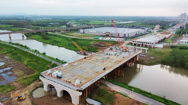 該項(xiàng)目建設(shè)工期緊、任務(wù)重、施工環(huán)境復(fù)雜、技術(shù)要求標(biāo)準(zhǔn)高,同時(shí)面臨洪水、高溫酷暑的考驗(yàn)。自該橋主橋鋼梁2024年3月開(kāi)始施工以來(lái),項(xiàng)目團(tuán)隊(duì)通力合作、精心策劃、科學(xué)組織、嚴(yán)密部署,為保障32米通航孔跨度要求,采用履帶吊在一側(cè)散拼吊裝焊接完成后進(jìn)行整體滑移,并嚴(yán)格按照施工計(jì)劃和技術(shù)規(guī)范執(zhí)行,仔細(xì)推敲和反復(fù)驗(yàn)證每一個(gè)環(huán)節(jié),克服種種困難,確保橋面系鋼梁順利合龍。