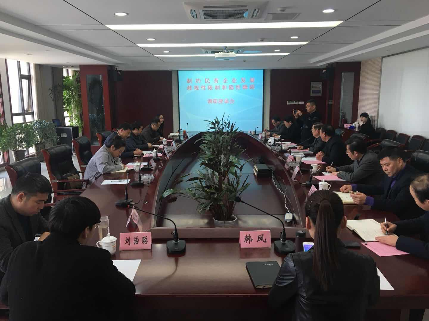 2018年3月13日下午,安徽省工商聯(lián)在我公司舉辦“制約民營企業(yè)發(fā)展歧視性限制和隱性障礙調(diào)研座談會”。出席會議的有安徽省政協(xié)副秘書長、安徽省工商聯(lián)黨組成員、副主席施廣勇、安徽省工商聯(lián)政策研究室主任李增流、安徽省工商聯(lián)機關(guān)黨委副主任科員袁志慧、安徽省城市基礎(chǔ)設(shè)施投資商會的監(jiān)事會主席、執(zhí)行會長、副會長、秘書長等各位企業(yè)家代表。