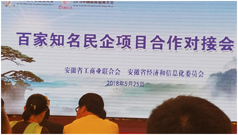 2018年5月25日下午,世界制造業(yè)大會(huì)百家知名民營企業(yè)項(xiàng)目合作對(duì)接會(huì)在安徽金陵大酒店舉行,中央統(tǒng)戰(zhàn)部副部長(zhǎng)、全國工商聯(lián)黨組書記徐樂江、省委常委、宣傳部長(zhǎng)虞愛華分別致辭,副省長(zhǎng)王翠鳳主持會(huì)議。部分世界和全國500強(qiáng)民營企業(yè)、行業(yè)知名企業(yè)和商協(xié)會(huì)代表等出席會(huì)議。