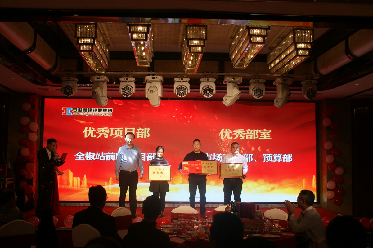 2020年1月20日,以“全新起航、再建輝煌”為主題的集團公司2020年新春年會盛典在合肥市隆重舉行。集團公司各子、分公司、各項目部近200人歡聚一堂,舉杯同慶,共話未來。年會分為頒獎典禮、文藝聯(lián)歡和宴會盛典三個階段。
