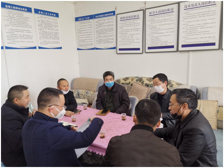 在項目部會議室夏局長等領(lǐng)導(dǎo)對項目部的復(fù)工準(zhǔn)備及防疫工作給予肯定,也指出存在的一些不足,并提出了很多中肯的建議。