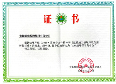 日前,安徽省環(huán)境保護產(chǎn)業(yè)發(fā)展促進會根據(jù)皖環(huán)產(chǎn)促(2019)第41號文件精神和《建設(shè)施工領(lǐng)域環(huán)境信用評價標(biāo)準(zhǔn)》公布了環(huán)保示范單位名單,我公司榮獲“AAA級環(huán)保示范單位”。
