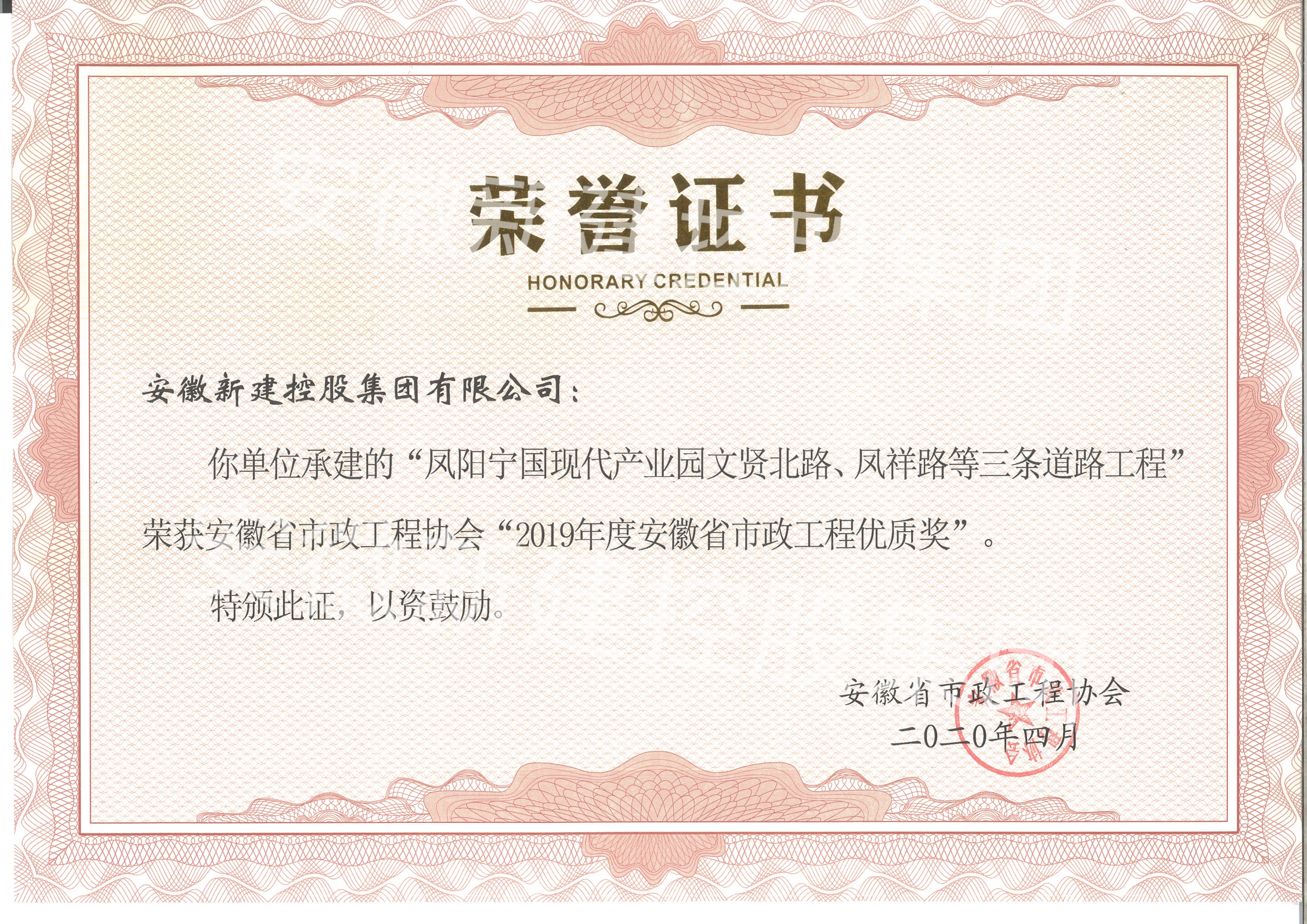 “安徽省市政工程優(yōu)質(zhì)獎”為安徽省內(nèi)市政工程領(lǐng)域內(nèi)的最高獎項(xiàng),安徽新建控股集團(tuán)此次有四項(xiàng)工程獲得該項(xiàng)殊榮,既展現(xiàn)了集團(tuán)公司2019年在市政行業(yè)的優(yōu)秀成果,也體現(xiàn)了安徽省市政工程協(xié)會對我集團(tuán)公司工作的肯定,公司將珍惜榮譽(yù),不斷提高技術(shù)質(zhì)量管理水平,為我省市政行業(yè)發(fā)展作出新的更大的貢獻(xiàn)。