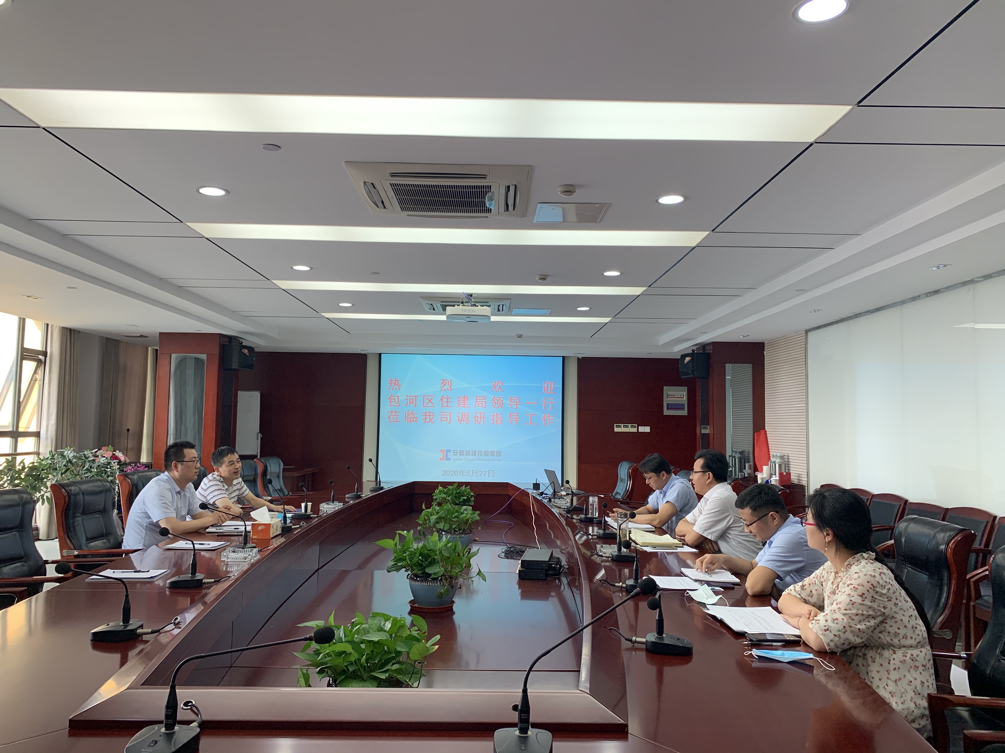 在公司多功能會議室,集團公司高層首先邀請劉局長一行觀看了集團公司的宣傳片,并向各位領(lǐng)導的到來表示熱烈歡迎,對包河區(qū)住建局一直以來對本土企業(yè)的支持和關(guān)愛表示衷心感謝,并對今年我司的發(fā)展規(guī)劃及項目建設(shè)情況進行匯報。賀軍表示,今年的疫情對公司的發(fā)展上存在一定的沖擊,當前最重要的工作就是在確保安全的情況下復工復產(chǎn),目前,公司大部分項目已全面復工,部分受疫情影響地區(qū)還在停工狀態(tài)。